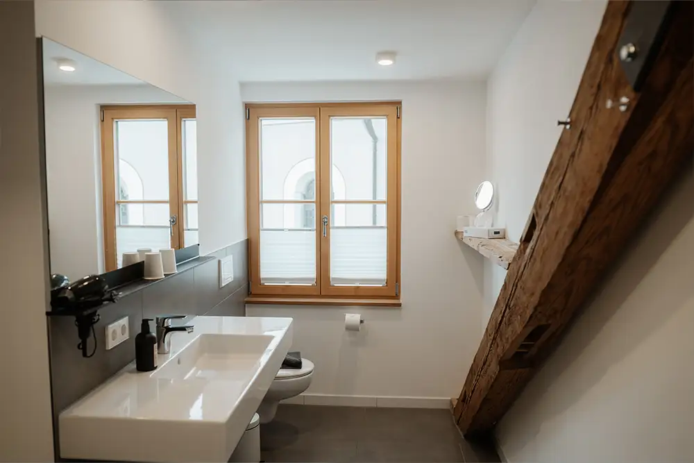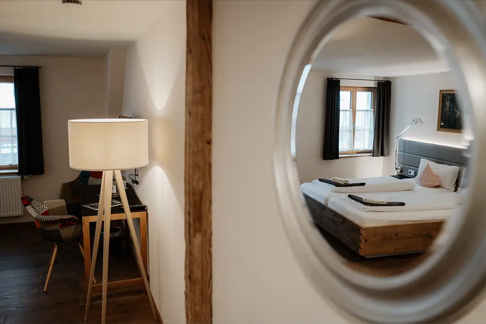 Tradition heißt für uns keinesfalls Stillstand, besonders wenn es um Ihren Schlafkomfort geht. In unseren Zimmern verbinden wir den urigen Charme des Allgäus harmonisch mit zeitgemäßer Ausstattung auf höchstem Niveau. Freuen Sie sich auf himmlische Nächte in hochwertigen Boxspringbetten, moderne Bäder mit Wellness-Charakter und schnelles WLAN im ganzen Haus. Wir kombinieren bewusst natürliche Materialien mit klarem Design, um eine Atmosphäre der Ruhe zu schaffen. So genießen Sie das authentische Lebensgefühl unserer Heimat, ohne auf gewohnten Luxus und technische Annehmlichkeiten verzichten zu müssen.